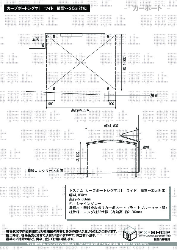 屋根高等 | ロング柱28仕様(有効高 約2,800mm) |