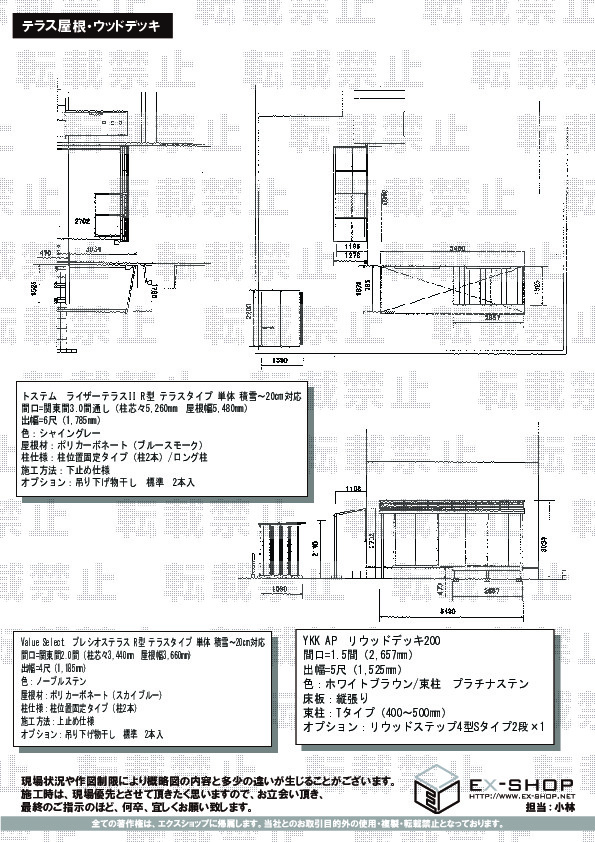 サイズ | 屋根幅 5,480mm 出幅 1,785mm |