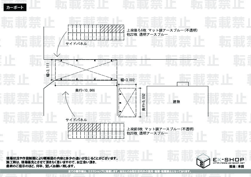 | 屋根材等 | ポリカーボネート(アースブルー) |