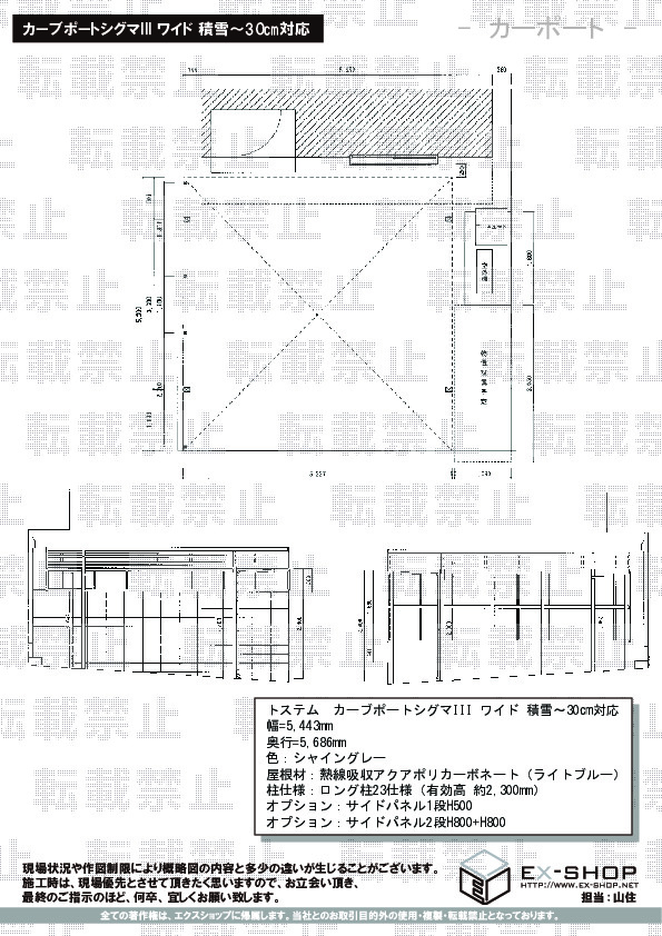 サイズ | 屋根幅 5,480mm 出幅 1,185mm |