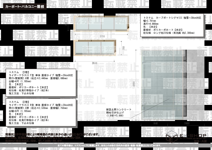 | サイズ | 屋根幅 2,750mm 出幅 1,185mm |