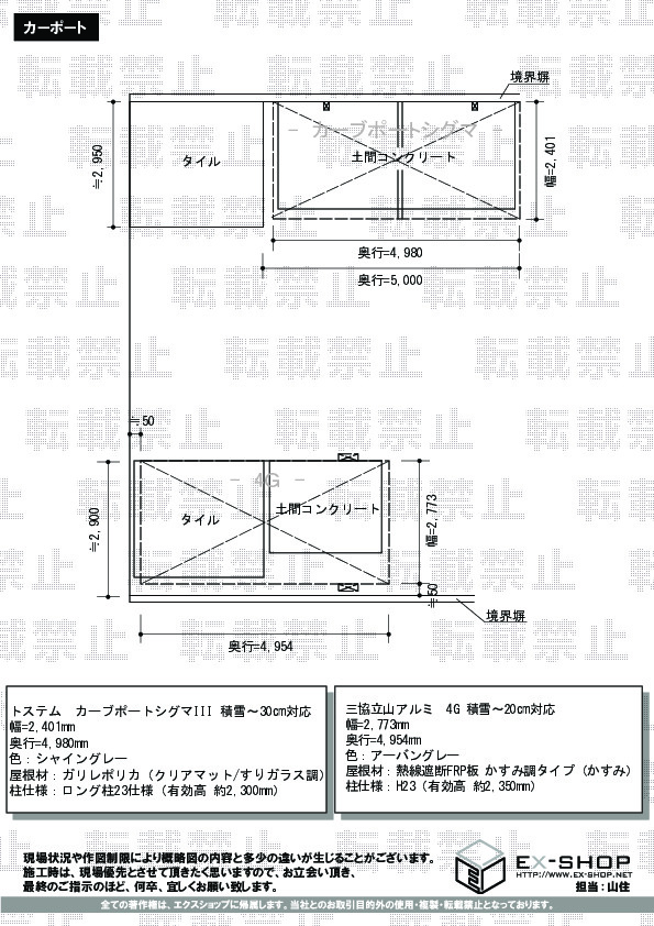 この度は、カーブポートシグマIIIと4Gの施工をご依頼頂きまして、誠に有難うございます。スマートなデザインのカーポートが、綺麗に納まりましたこと、大変嬉しく存じます。特に、前側に柱を施工しない4Gは、お車の出し入れもしやすく、開放感のあるお仕上がりでございますね。施工内容にもご満足のお言葉を頂き、誠に有難うございます。施工担当者にとりましても、お客様のお喜びのお言葉が、一番の励みになっております。今後も変わらず、お客様のご満足の為に精進して参りたいと存じますので、また何かございましたら、お気軽にエクスショップまでご連絡ください。