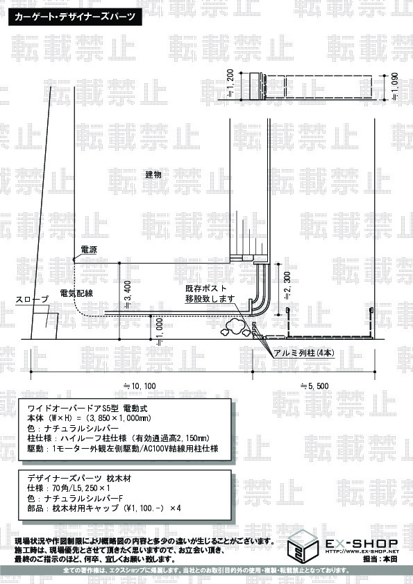 | 柱タイプ | ハイルーフ柱仕様(有効通過高2,150mm) |