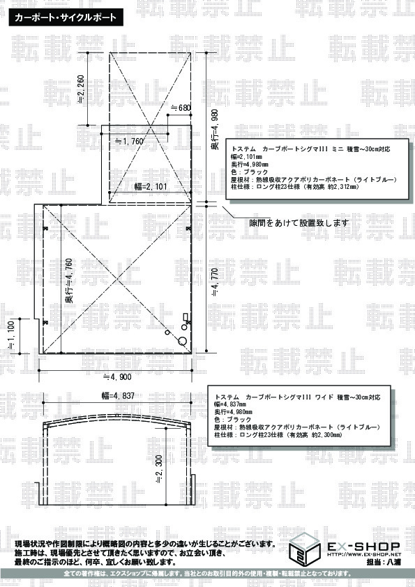 | 屋根高等 | ロング柱23仕様(有効高 約2,312mm) |