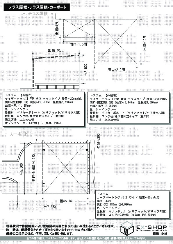 サイズ | 屋根幅 2,750mm 出幅 1,185mm |