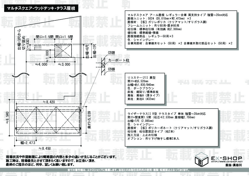 サイズ | 屋根幅 2,750mm 出幅 2,085mm |