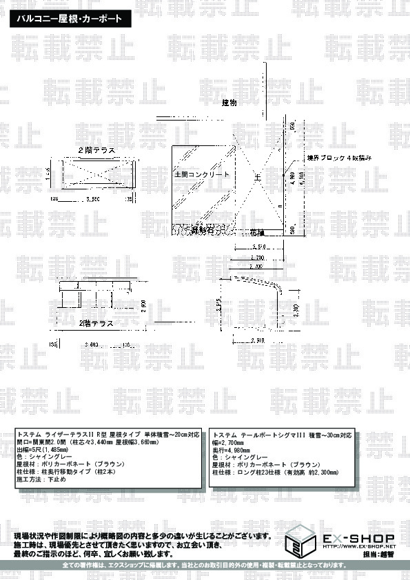 サイズ | 屋根幅 3,660mm 出幅 1,485mm |
