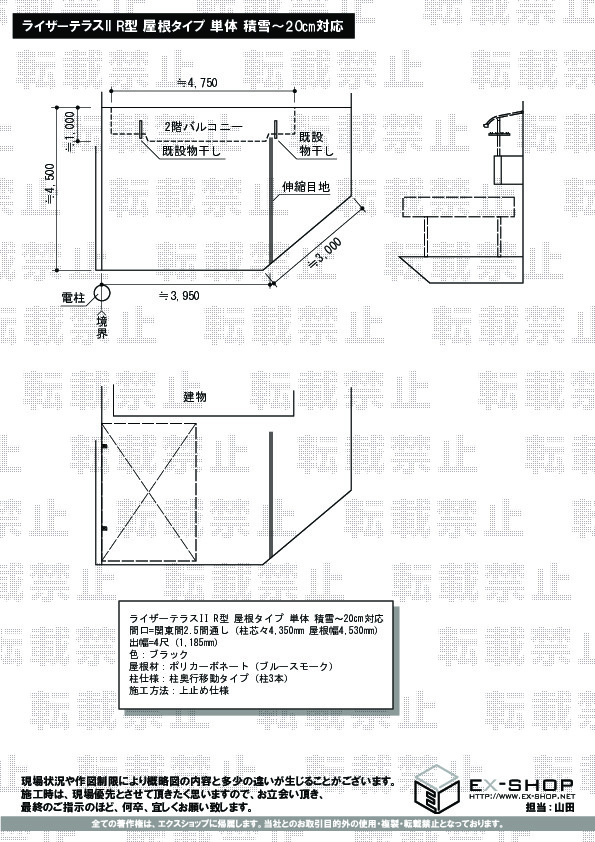 | サイズ | 屋根幅 4,570mm 出幅 1,185mm |