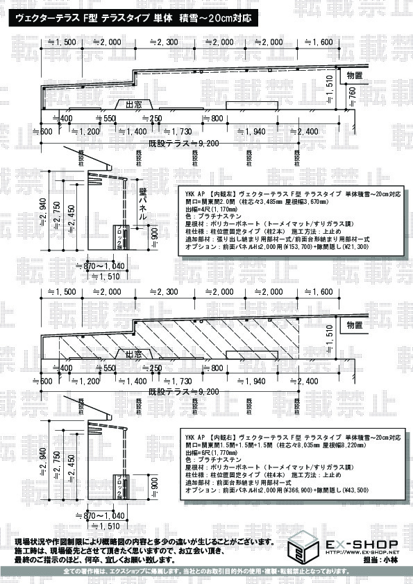 | サイズ | 屋根幅 3,670mm 出幅 1,170mm |