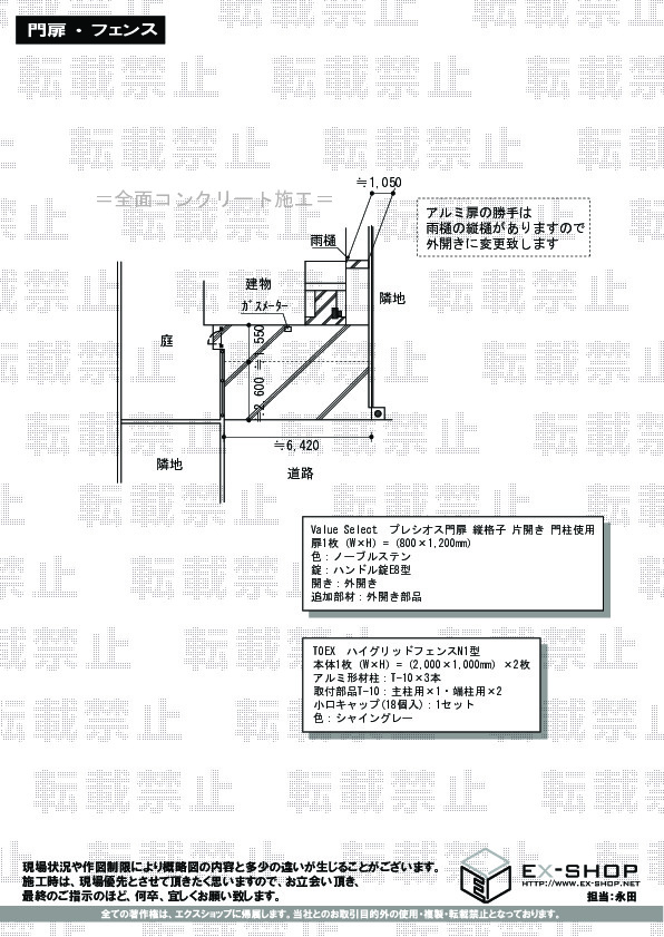 この度は、再度、エクスショップをご利用頂き、誠に有り難うございます。当方の連絡不足により、お客様にご心配、ご迷惑をお掛けしましたこと、深くお詫び申し上げます。施工に関しましては、満足して頂けましたこと、大変嬉しく存じます。グレー系のお色で統一された、門扉とフェンスは落ち着きのあるスタイリッシュな仕上がりでございますね。今後は、対応につきましても、お客様に満足して頂けるように、精進して参りますので、また、機会がございましたら、是非、エクスショップにご用命くださいますよう、宜しくお願い申し上げます。