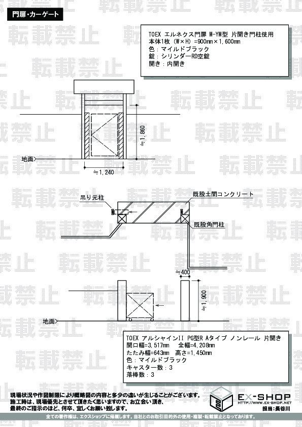 中帯びやキャスターのないすっきりとしたデザインが特徴の、高尺門扉エルネクスシリーズ。扉のデザインとサイズを豊富にご用意しましたので、ご自宅に合わせてご自由にお選びください。こちらのM-YM型は奥が見えない作りの横目隠しタイプです。セキュリティに配慮した錠仕様や、オートクローザーなどの便利なオプションも選択可能です。
