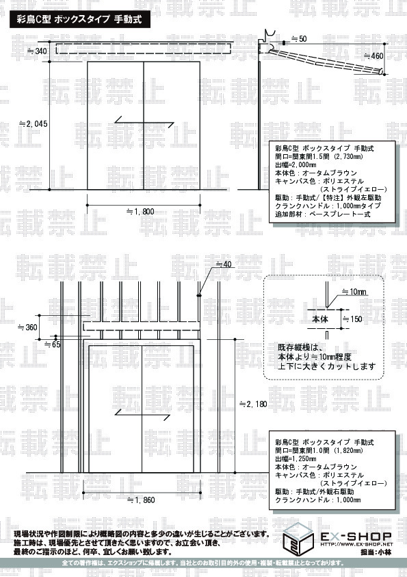 | サイズ | 間口 2,730mm 出幅 2,000mm |