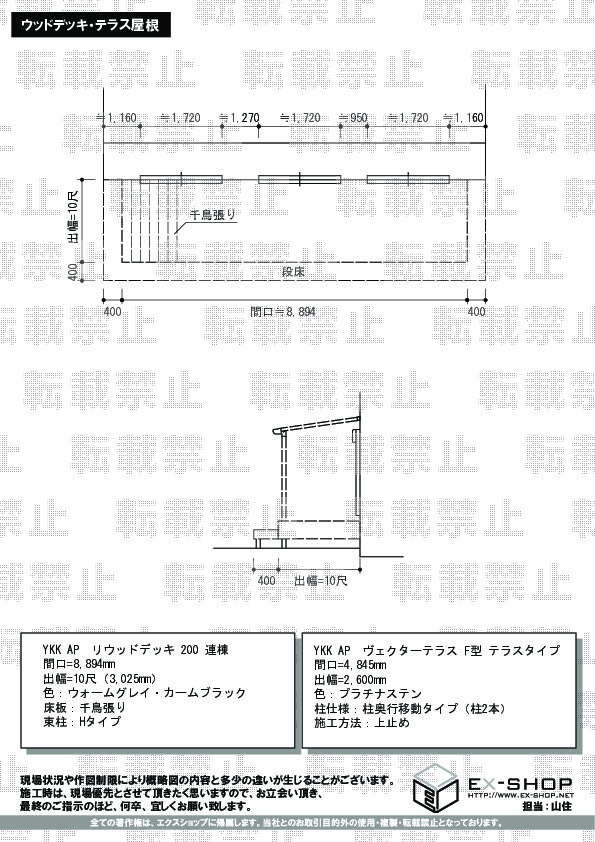 | サイズ | 屋根幅 4,845mm 出幅 2,600mm |