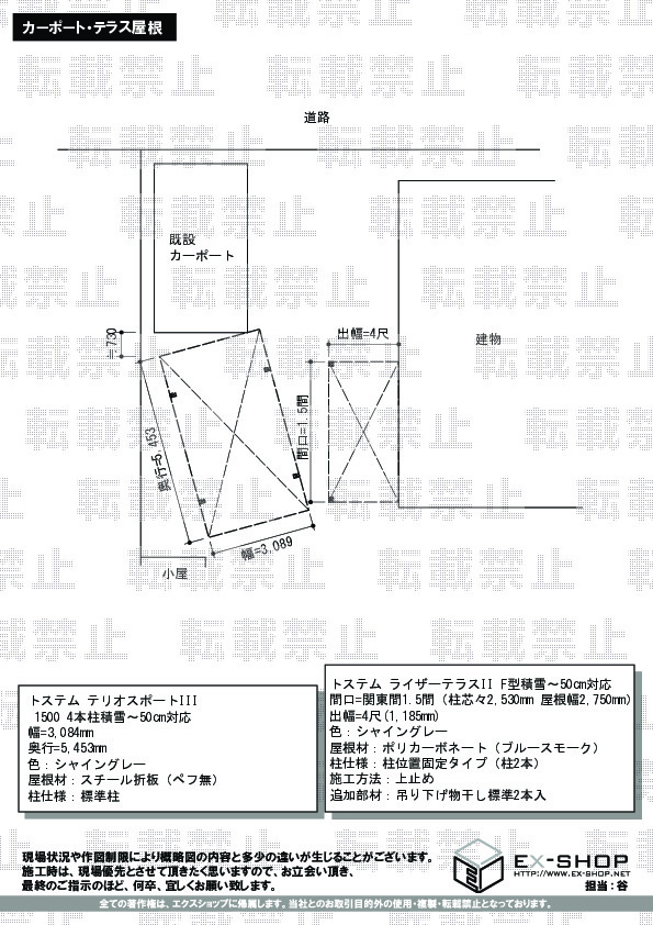 | サイズ | 屋根幅 2,750mm 出幅 1,185mm |