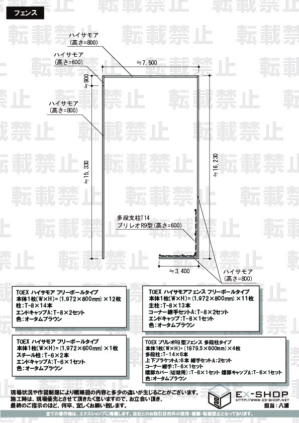 この度はエクスショップをご利用頂きまして、誠に有難うございます。目隠しタイプのフェンスと、すっきりとしたデザインのフェンスを、組み合わすことにより、外観上も機能的にも優れたフェンスが完成致しましたこと、スタッフ一同大変嬉しく存じます。施工士にとりましても、お客様のお喜びのお言葉が何より励みとなっております。今後益々精進して参りますので、また機会がございましたら、是非弊社をご用命くださいますよう、お願い申し上げます。