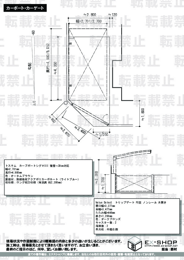 | 屋根高等 | ロング柱23仕様(有効高 約2,300mm) |