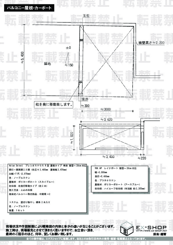 | サイズ | 屋根幅 3,670mm 出幅 2,070mm |