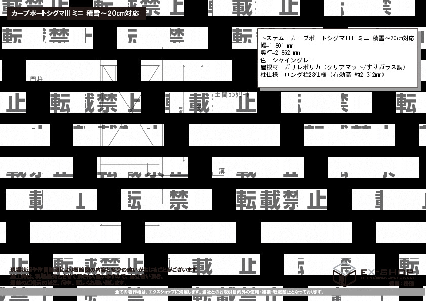 屋根高等 | ロング柱23仕様(有効高 約2,312mm) |