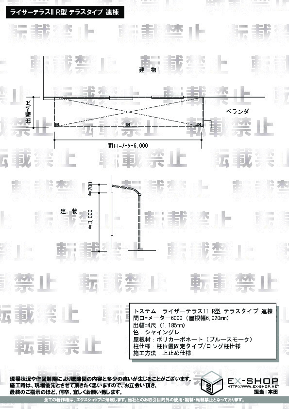 サイズ | 屋根幅 6,020mm 出幅 1,185mm |