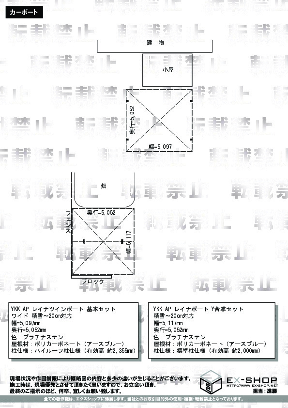 屋根高等 | 標準柱仕様(有効高 約2,000mm) |