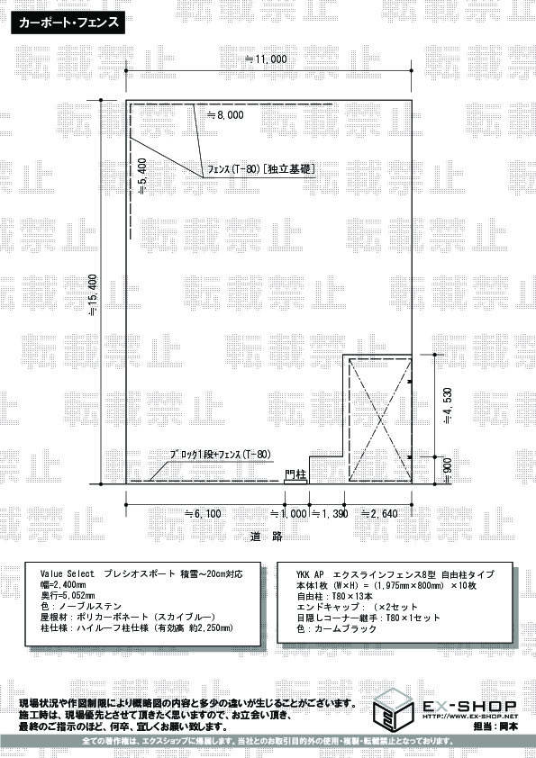 この度は、プレシオスポート及びエクスラインフェンス8型の施工ご依頼を頂き誠に有難うございます。『満足度120%』とのお言葉を頂戴でき、誠に光栄でございます。上品でご自宅の外観を損なうことなく、カーポートもフェンスも綺麗に収まっておりますね。今後も、お客様に快適にご利用頂ける様、日々精進して参りますのでまた機会がございましたら是非エクスショップをご利用下さいます様、宜しくお願い致します。