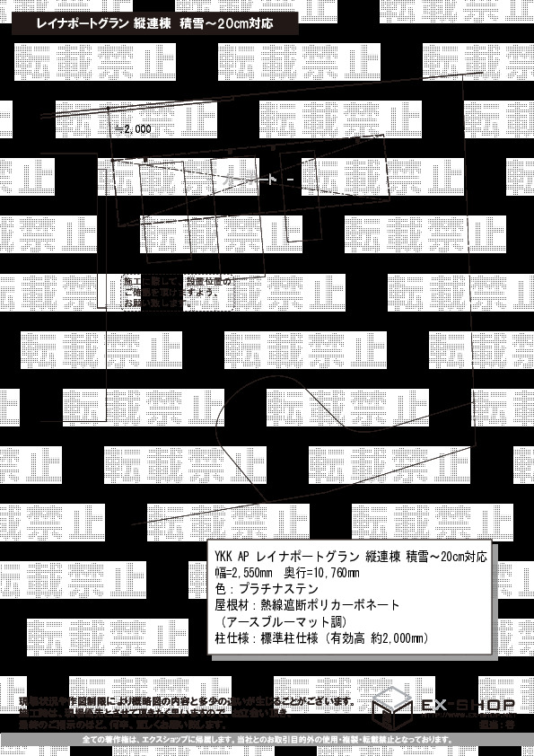 屋根高等 | 標準柱仕様(有効高 約2,000mm) |