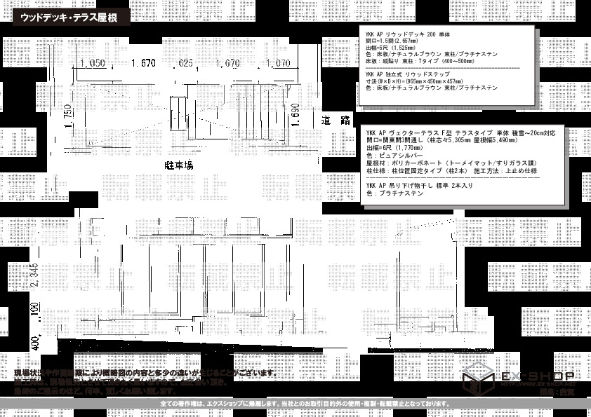 サイズ | 屋根幅 5,490mm 出幅 1,770mm |