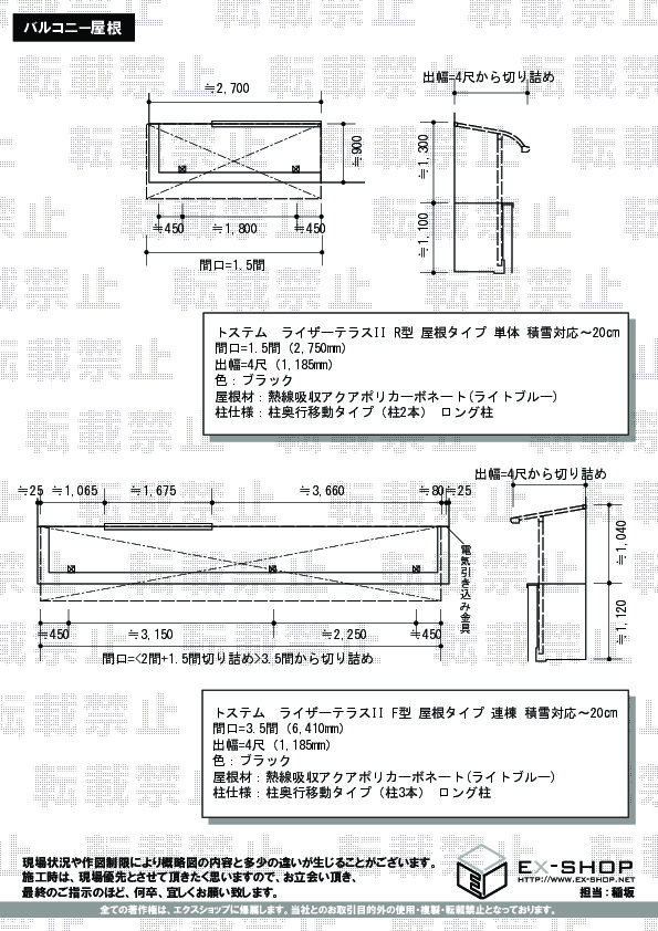 | サイズ | 屋根幅 2,750mm 出幅 1,185mm |