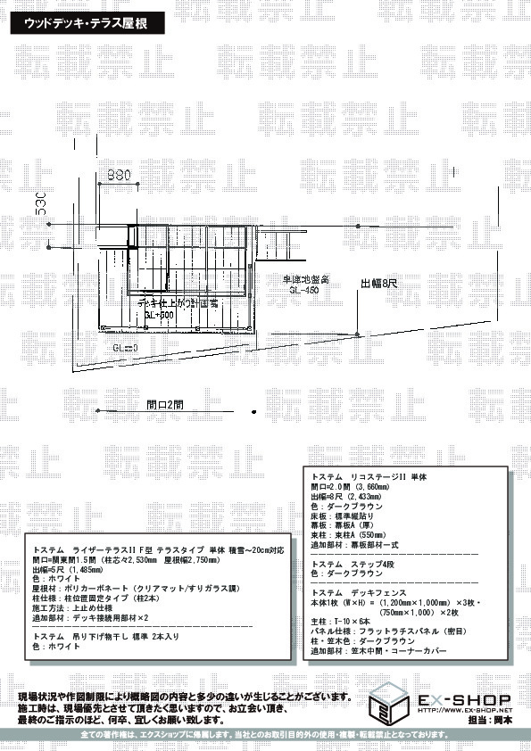 サイズ | 屋根幅 2,750mm 出幅 1,485mm |