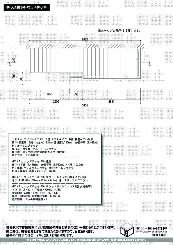 | サイズ | 間口 5,451mm 出幅 1,520mm |