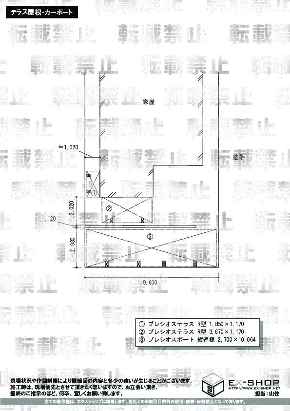 | サイズ | 屋根幅 3,670mm 出幅 1,770mm |
