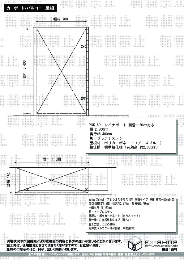 | サイズ | 屋根幅 2,760mm 出幅 1,170mm |