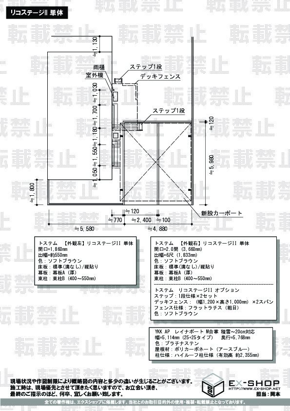サイズ | 間口 2.0間(3,660)mm 出幅 6尺(1,833)mm |