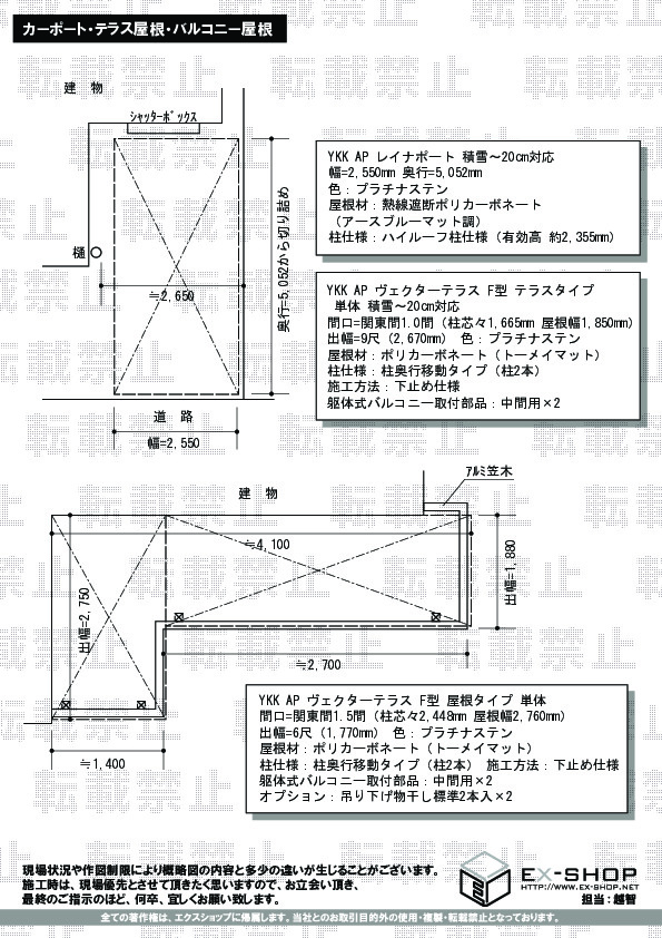 サイズ | 屋根幅 2,760mm 出幅 2,670mm |