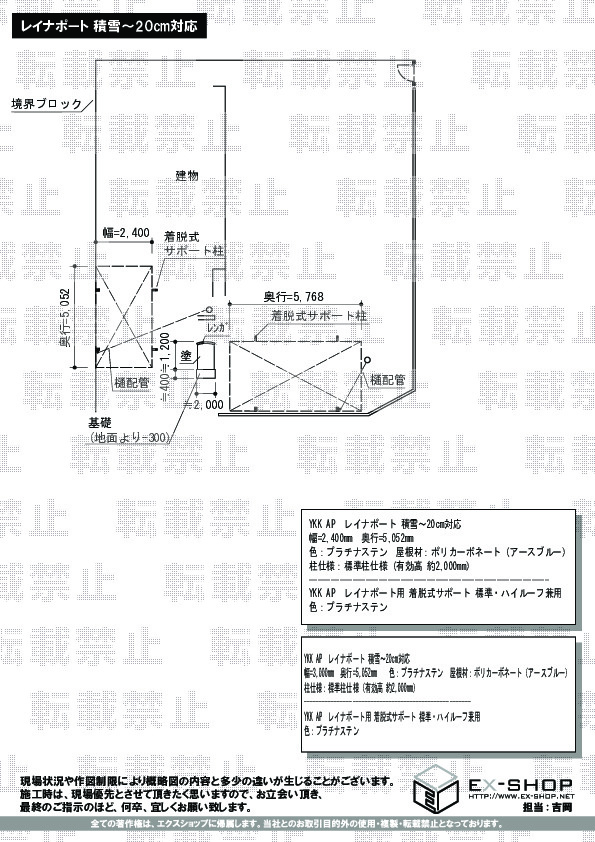 屋根高等 | 標準柱仕様(有効高 約2,000mm) |