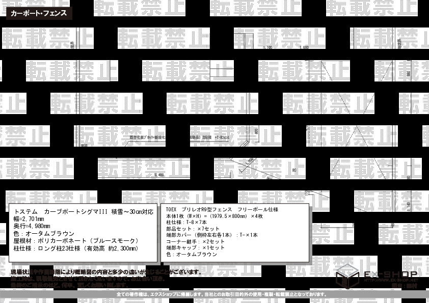 | 屋根材等 | ポリカーボネート(ブルースモーク) |