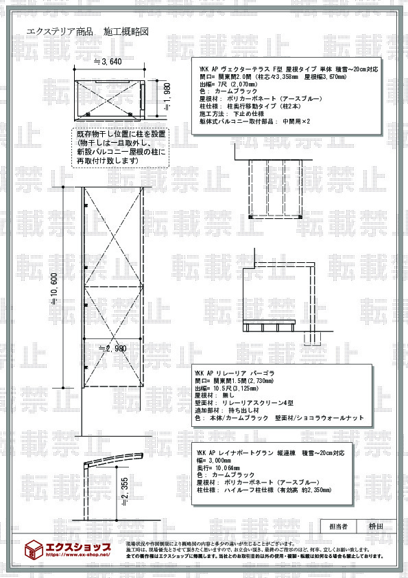 | サイズ | 屋根幅 3,670mm 出幅 2,070mm |