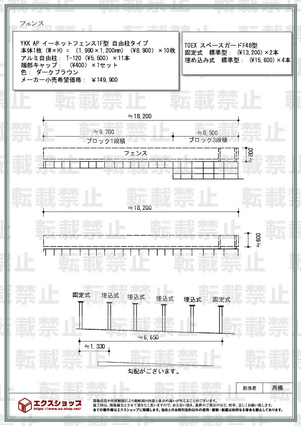 この度は、エクスショップをご利用頂きまして、誠に有り難うございます。顔のみえないネット販売で高額の商品をご購入頂く際に、ご不安に思われるのもごもっともでございます。にもかかわらず、弊社を信頼して、施工までお任せ頂き、誠に光栄でございます。シンプルで圧迫感のないフェンスが綺麗に納まり、ご自宅の防犯性の向上にもお役にたてるものと存じます。これからも、お客様の笑顔の為に、日々努力して参りたいと存じますので、また、機会がございましたら、是非エクスショップをご利用頂けますよう、宜しくお願い致します。