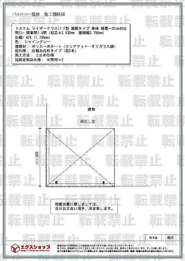 | サイズ | 屋根幅 2,750mm 出幅 1,785mm |
