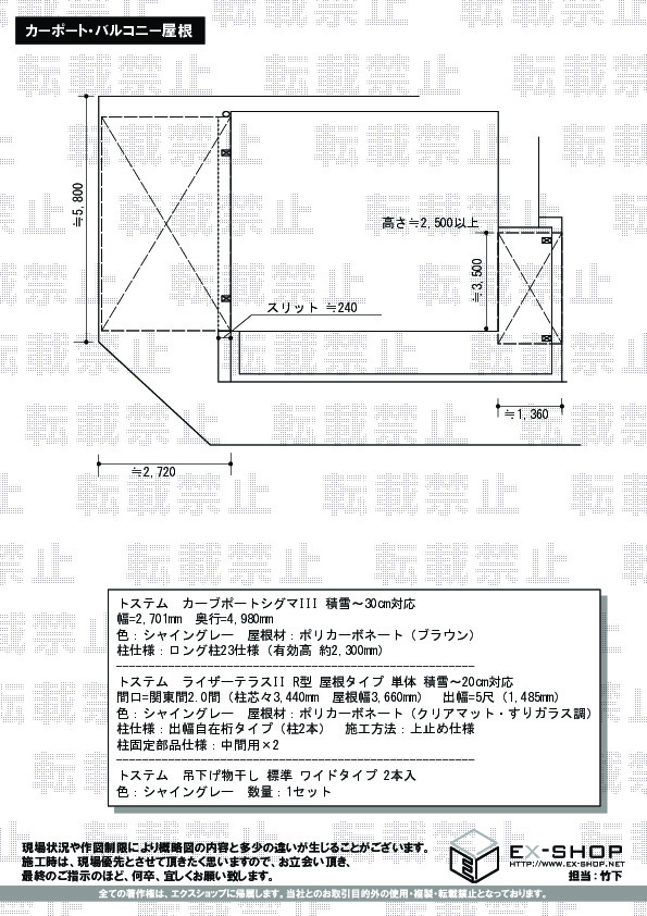 屋根高等 | ロング柱23仕様(有効高 約2,300mm) |