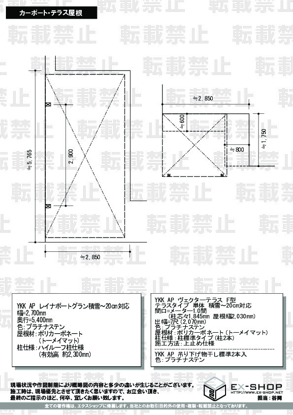 | サイズ | 屋根幅 2,030mm 出幅 2,070mm |