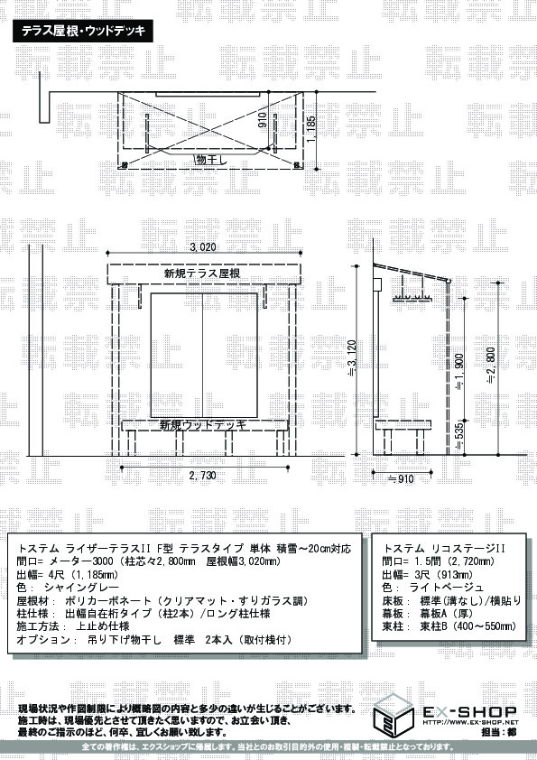 | サイズ | 屋根幅 3,020mm 出幅 1,185mm |