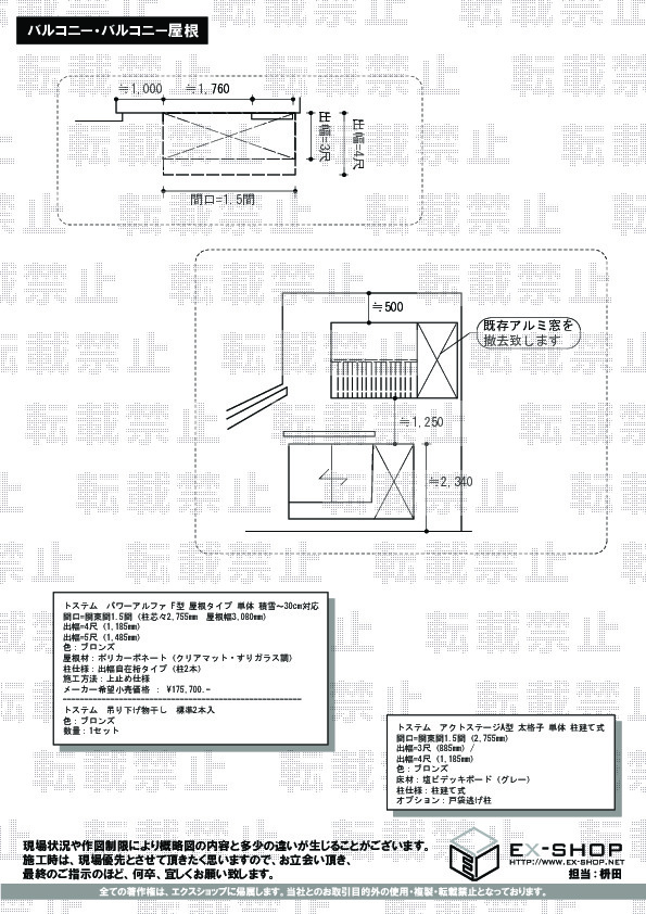 | 柱仕様 | 出幅自在桁タイプ(柱2本) |