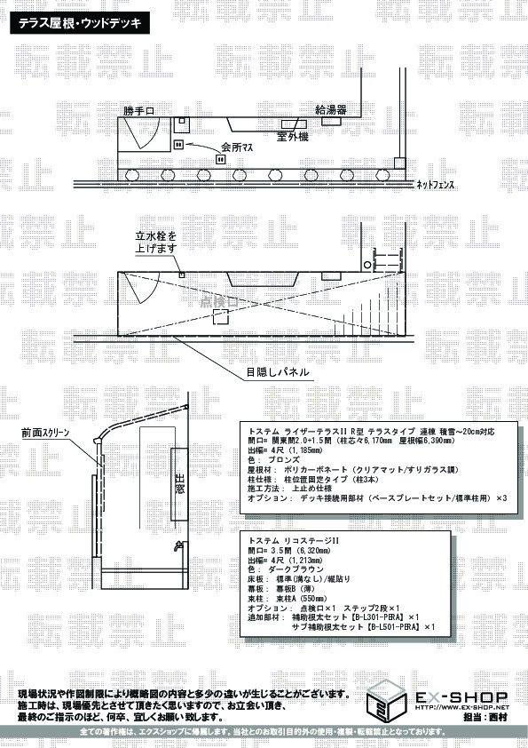 再度、エクスショップをご利用頂き誠に有難うございます。リコステージの設置により、勝手口からの段差がなくなり、ライザーテラスの取り付けにより、雨にぬれることもなく、快適な空間が完成致しましたこと、私どもも大変嬉しく存じます。今後も、お客様のご希望にそえるよう、日々精進して参りますので、また機会がございましたら是非エクスショップをご利用下さいますよう、宜しくお願い致します。