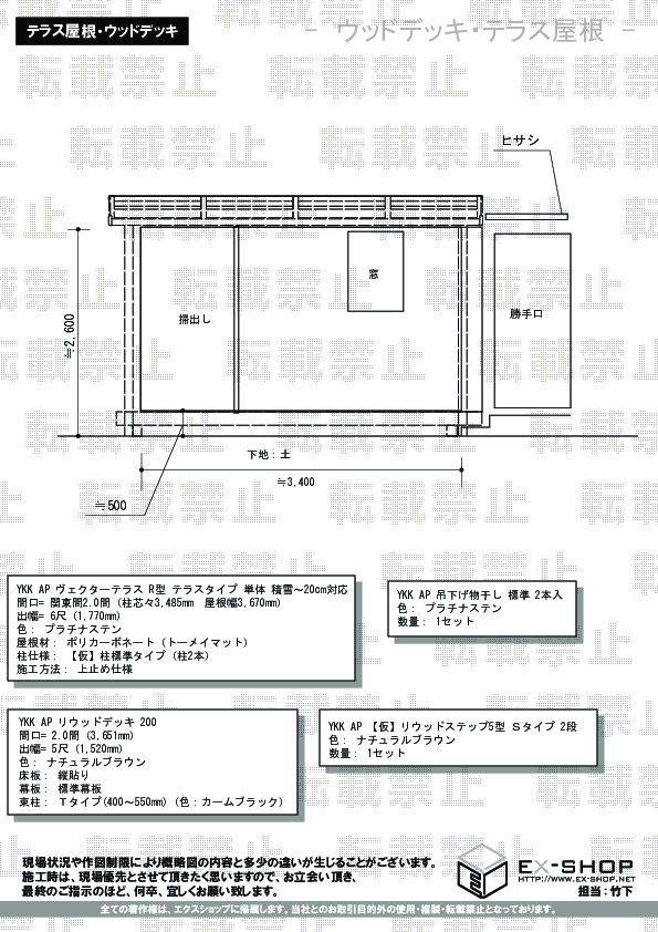この度はエクスショップをご利用頂きまして、誠に有り難うございます。満足とのお言葉を頂戴致しまして、私どもと致しましても感無量でございます。テラス屋根とウッドデッキは洗濯物干し場としても、お客様ご家族様の憩いの場としても活躍できるものと存じます。カーポート・物置に関しましてもお客様の大事な品物をお守りする、大変機能的な商品でございます。どの商品もお気に召して頂き、永くご愛用頂ければ幸いでございます。また何かございましたら、お気軽にエクスショップまでご連絡下さいますよう、宜しくお願い致します。