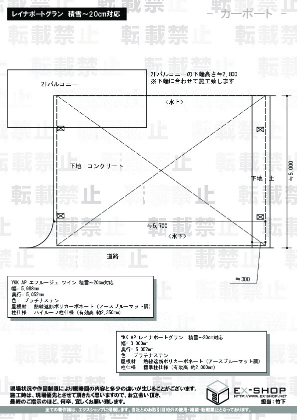 | 屋根高等 | 標準柱仕様(有効高 約2,000mm) |