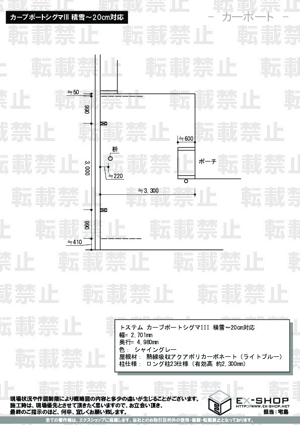 | 柱仕様 | 出幅自在桁タイプ(柱3本) |