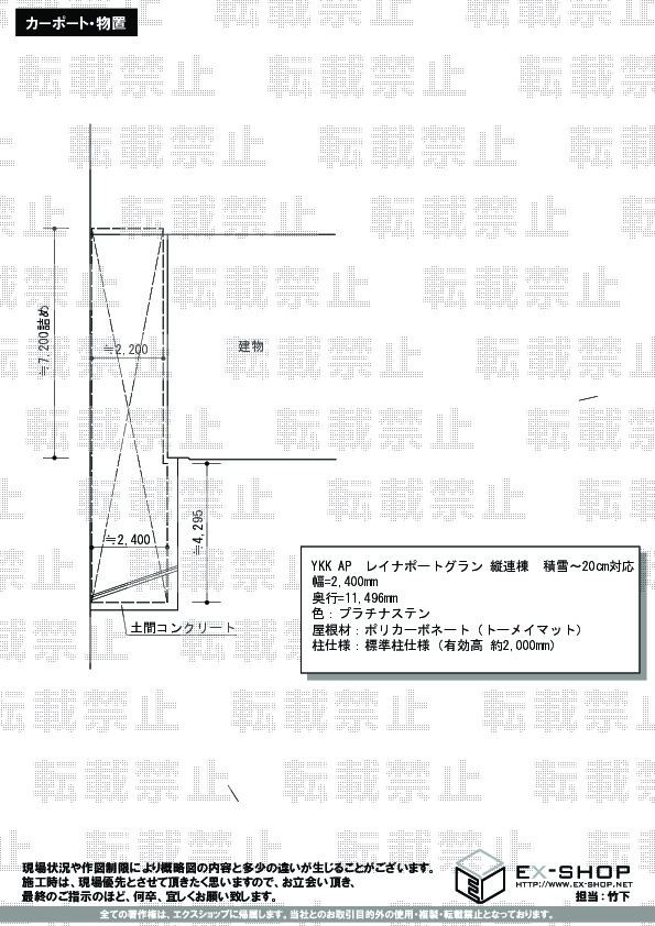 | 屋根高等 | 標準柱仕様(有効高 約2,000mm) |