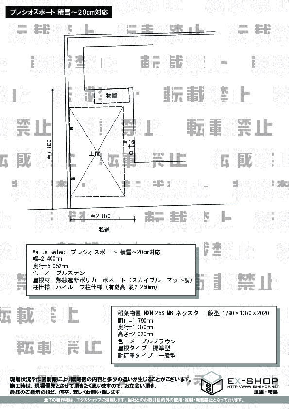 弊社提携施工店の担当者を信頼して、カーポートと物置の施工をお任せくださり有り難うございました。弊社のオリジナル商品でございますプレシオスポートが、素敵なお車の指定席となりましたこと、大変嬉しく存じます。カラーバリエーションが豊富な物置も、お住まいに見事に調和してございますね。これからも、お客様の笑顔の為に、日々努力して参りたいと存じますので、また、機会がございましたら、是非エクスショップをご利用頂けますよう、宜しくお願い致します。