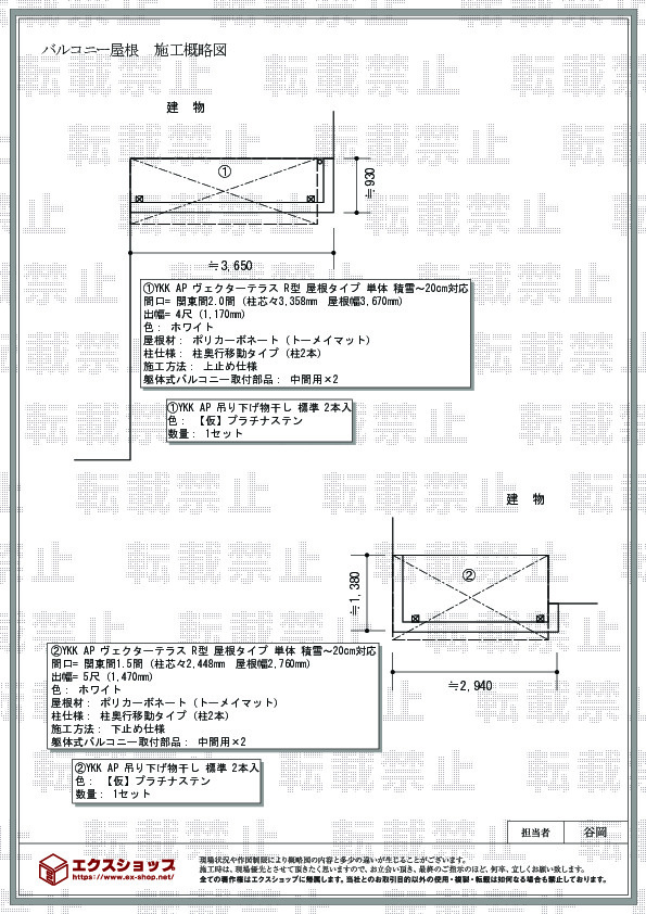 | サイズ | 屋根幅 3,670mm 出幅 1,170mm |